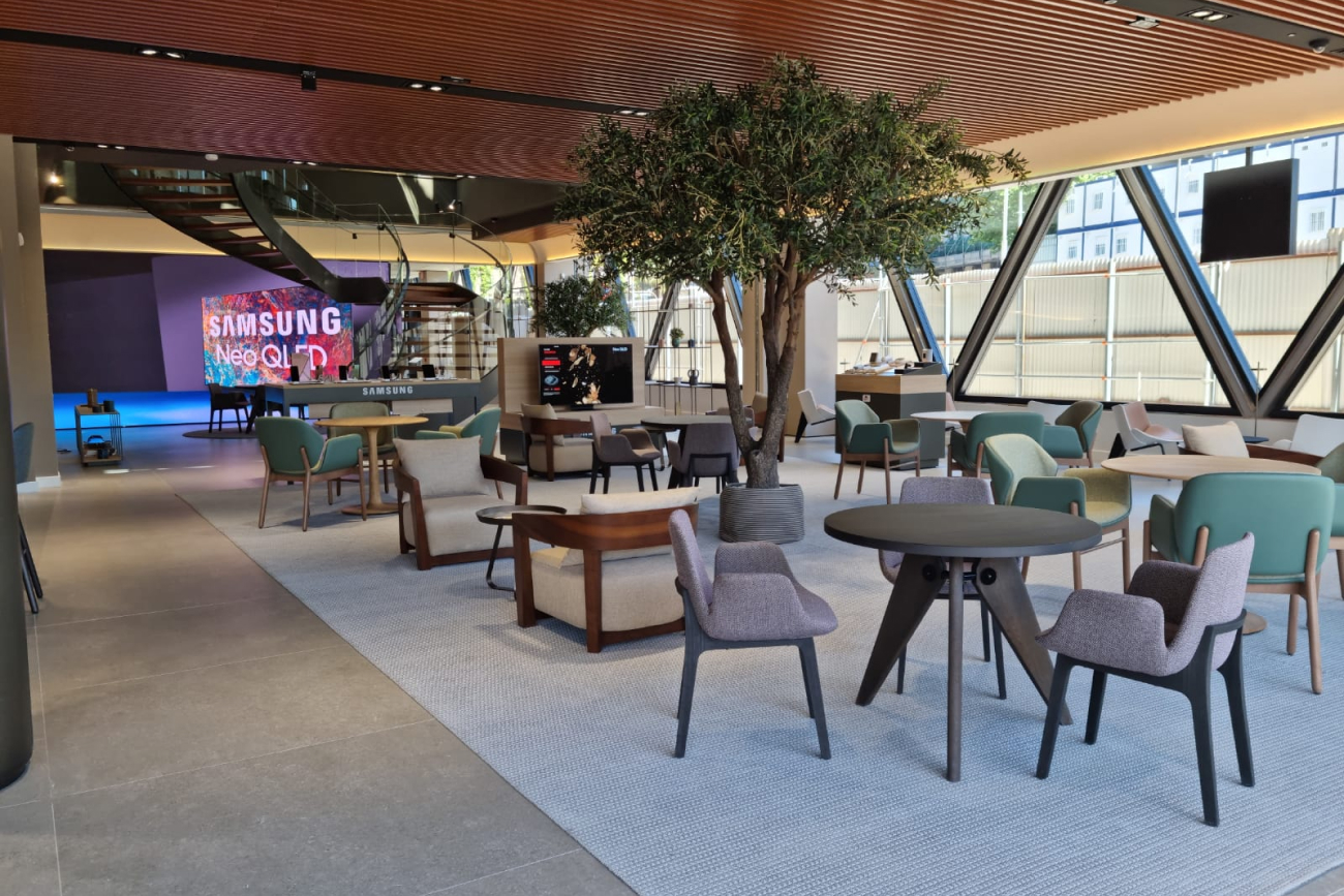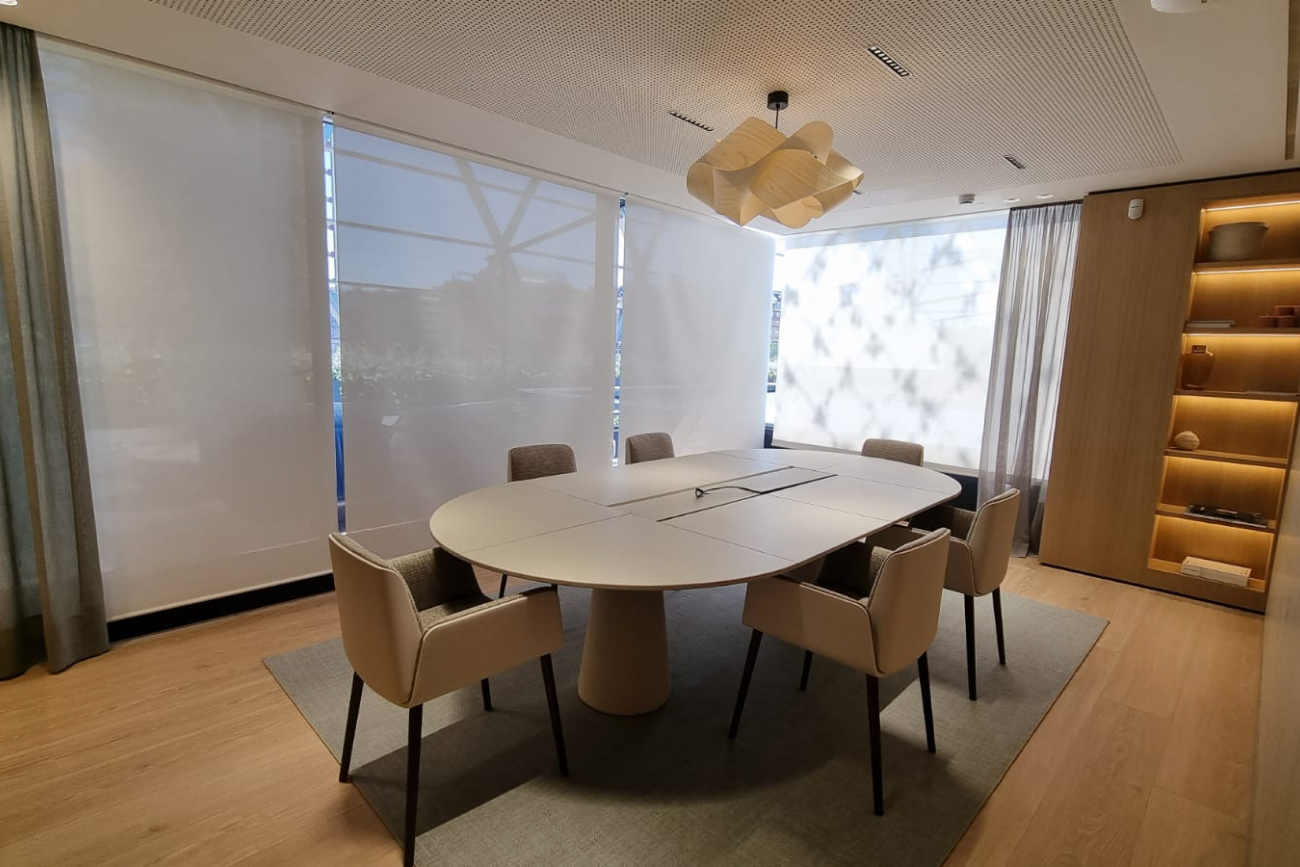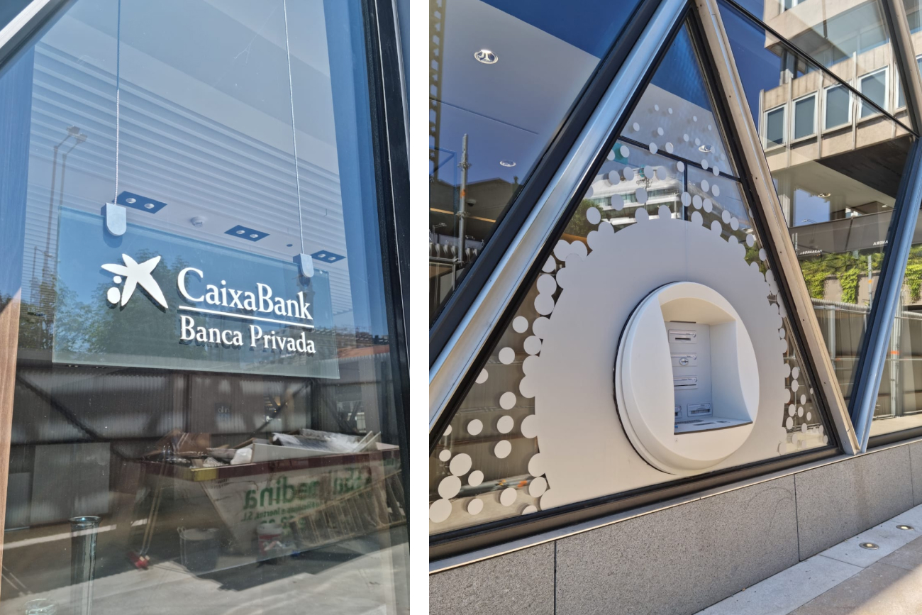 CaixaBank abrió en 2021 su tercer ‘all in one’ de la península, en uno de los puntos emblemáticos de Madrid,  en la misma plaza de Colón, y en un edificio destacado: el edificio Axis, el último proyecto de Norman Foster en la capital. La entidad financiera contó con nosotros para la rotulación tanto interior como exterior. Nos encargamos también de todas las cortinas del edificio, screens motorizados y cortinas decorativas.
