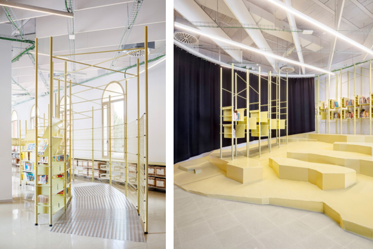 El estudio de arquitectura Beatriz Borque y Miquel Mariné, confió en nosotros para desarrollar e instalar las cortinas acústicas del nuevo espacio infantil en la renovada Biblioteca Nou Barris. Dos cortinas opacas con tejido acústico, con rieles con radios desiguales, y sistema de sujeción mediante mosquetones con la complejidad añadida que se nos solicitaban diferentes alturas. El singular proyecto fue nominado a los premios Fad 2024.